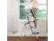 Independent Safety Lock, ---Upward open safety lock, cannot fold after opening, prevent the child to play other article collision when using, close safety lock downward after using, tilt ladder forward easy fold ladder, pile up in corner or stick wall place, also can put bed bottom, car backseat, do not take up too much space.