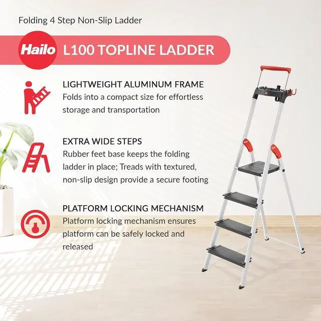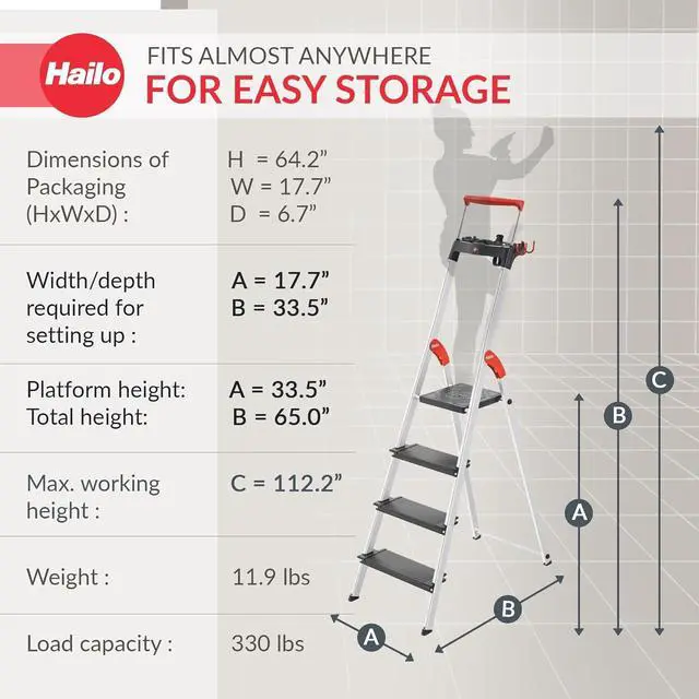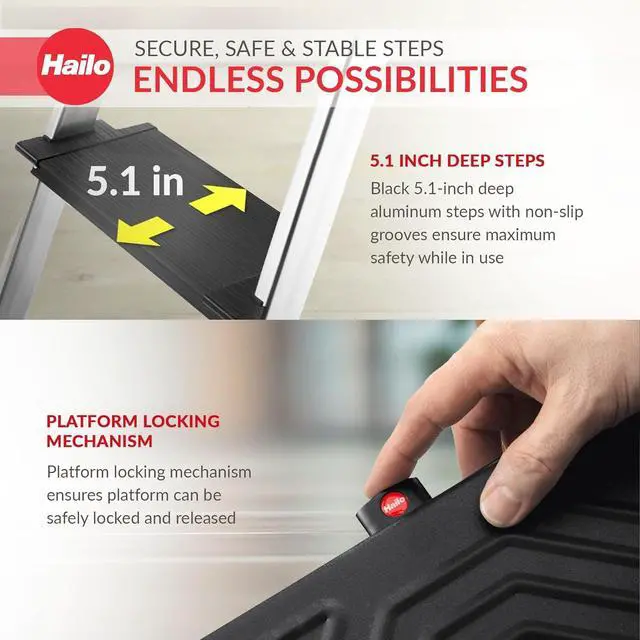 Reliable: Hailo ladders provide sturdy aluminum construction gives this 11.9 -pound folding step stool durability and extra stability; Supports up to 330 pounds