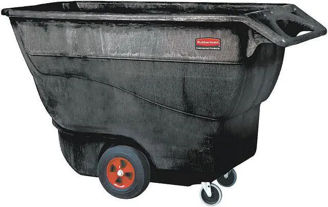 Low-Maintenance Plastic Tilt Truck, Cubic Foot Capacity 27.0 cu ft, Load Capacity 1, 250 lb, Overall Length 70 3/4 in, Overall Width 33 1/2 in, Overall LxWxH 70 3/4 in x 33 1/2 in x 42 1/4 in, Overall Height 42 1/4 in, Optional Lid Mfr. No. 9T23, Container Material Plastic, Color Black, Handle Type Ergonomic, Mobility Option Manual, Caster/Wheel Configuration (2) Axle-Mounted, (2) Swivel, Caster/Wheel Mounting Location Standard, Caster Wheel/Tread Material Rubber, Caster Wheel Dia. 5 in. This item has been restricted from sale in the following state (s): []