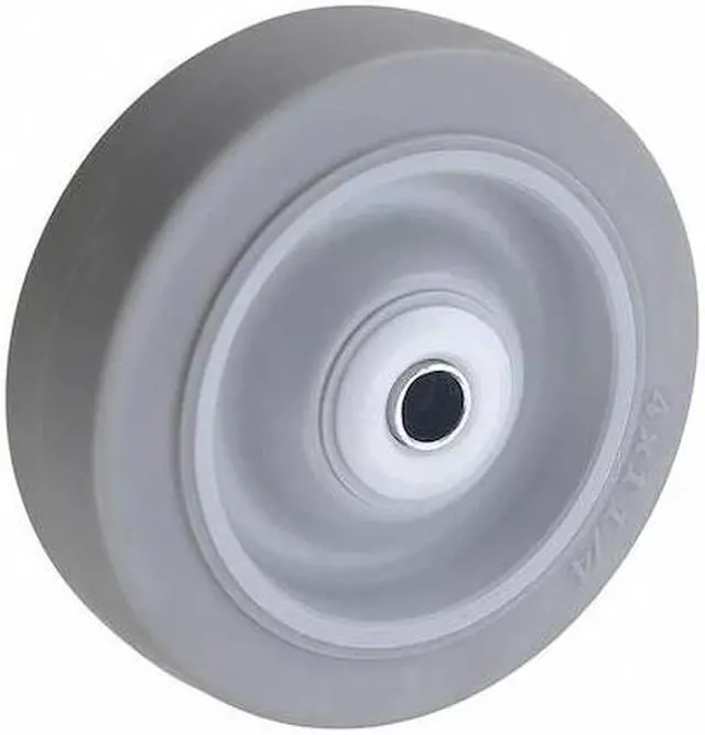 Nonmarking Rubber Tread on Plastic Core Wheel, 300 lb Load Rating, 300 to 999 lb Load Rating Range, 4 in Wheel Dia., 1 1/4 in Wheel Width, Thermoplastic Rubber Wheel/Tread Material, Soft, 75 Shore A, Delrin, Standard Tread Shape, 3/8 in For Axle Size, No Includes Spanner Bushing, Plastic Wheel Core Material, Yes Non-Marking, 1 9/16 in Hub Length. This item has been restricted from sale in the following state (s): []