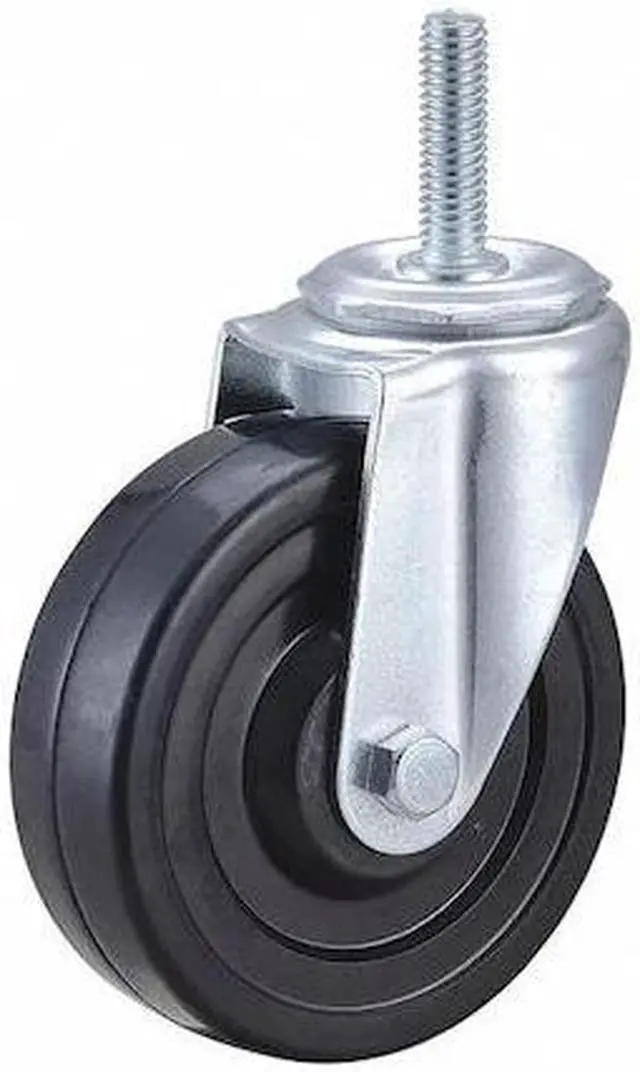 General Purpose Threaded Stem Caster, Swivel Caster, 170 lb Load Rating, 0 to 299 lb, 4 in Wheel Dia., 1 1/4 in Wheel Width, Rubber Wheel/Tread Material, 4 13/16 in Mounting Height, Plain, 7/16 In. -14 x 1-1/2 in Caster Stem Size, Threaded, Steel Caster Frame Material, Zinc Plated Frame Finish, No Non-Marking, 1 Number of Wheels. This item has been restricted from sale in the following state (s): []