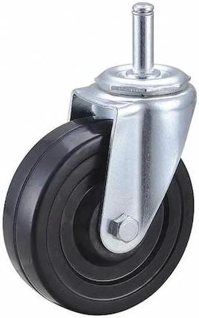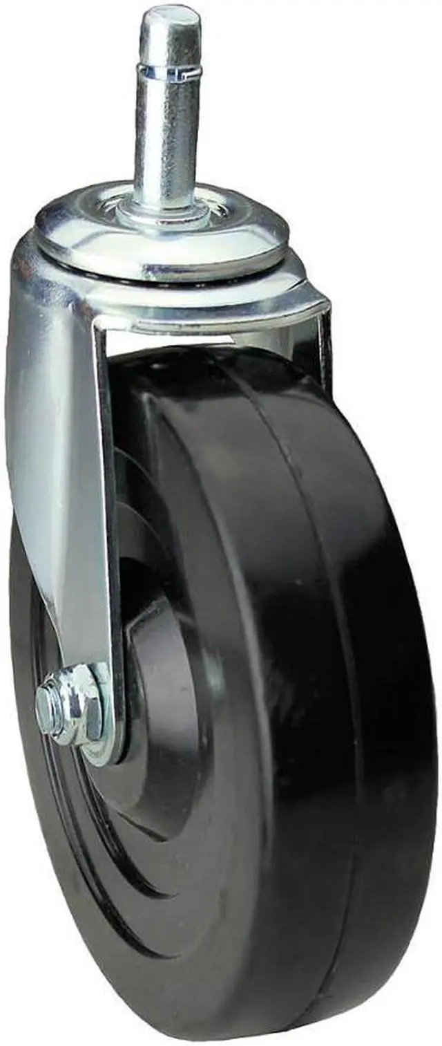 General Purpose Friction-Ring Stem Caster, Swivel Caster, 170 lb Load Rating, 0 to 299 lb, 4 in Wheel Dia., 1 1/4 in Wheel Width, Rubber Wheel/Tread Material, 4 13/16 in Mounting Height, Plain, 7/16 in x 1-3/8 in Caster Stem Size, Friction Ring, Steel Caster Frame Material, Zinc Plated Frame Finish, No Non-Marking, 1 Number of Wheels. This item has been restricted from sale in the following state (s): []