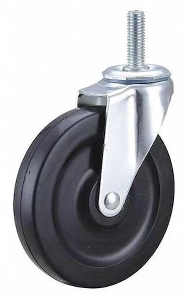 California Proposition 65: This product contains a chemical known to the State of California to cause birth defects or other reproductive harm. Stem Caster, Swivel Caster, 125 lb Load Rating, 0 to 299 lb, 5 in Wheel Dia., 1 in Wheel Width, Rubber Wheel/Tread Material, 5 13/16 in Mounting Height, Plain, 1/2 In. -13 x 1-1/2 in Caster Stem Size, Threaded, Steel Caster Frame Material, Zinc Plated Frame Finish, No Non-Marking, 1 Number of Wheels. This item has been restricted from sale in the following state (s): []