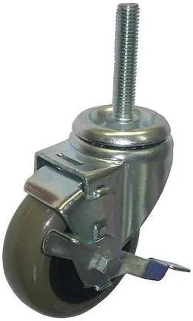 California Proposition 65: This product contains a chemical known to the State of California to cause birth defects or other reproductive harm. Stem Caster, Swivel Caster with Brake, 250 lb Load Rating, 0 to 299 lb, 3 1/2 in Wheel Dia., 1 1/4 in Wheel Width, Polyurethane Wheel/Tread Material, 4 35/64 in Mounting Height, Delrin, 1/2 In. -13 x 2-1/2 in Caster Stem Size, Threaded, Steel Caster Frame Material, Zinc Plated Frame Finish, Yes Non-Marking, 1 Number of Wheels. This item has been restricted from sale in the following state (s): []
