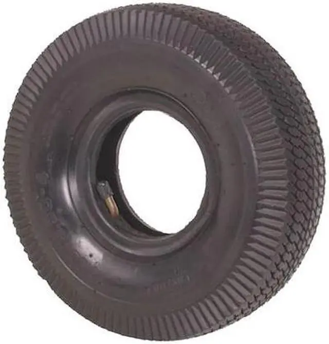 Replacement Tire and Inner Tube Kit, Rubber, Sawtooth Tread, 4.10 / 3.50 -4, 10 in Tire Dia., 3 1/2 in Tire Width, Inner Tube Tire Style, 1/4 in Valve Stem Dia., Valve Stem Style Angled Stem. This item has been restricted from sale in the following state (s): []