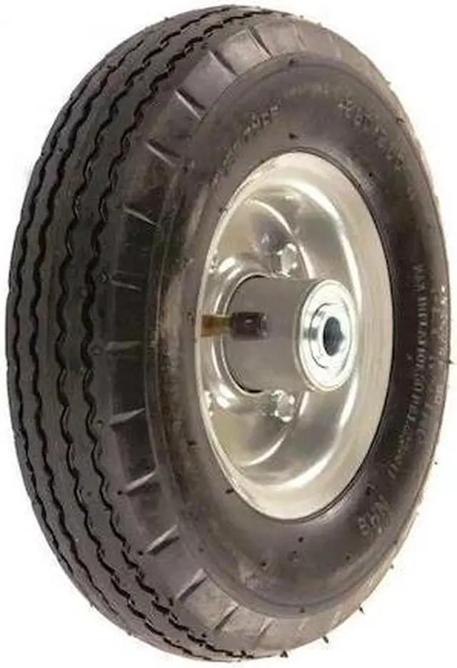 California Proposition 65: This product contains a chemical known to the State of California to cause birth defects or other reproductive harm. Pneumatic Wheel, 445 lb Load Rating, Sawtooth Tread, 12 1/4 in Wheel Dia., 1 7/8 in Wheel Width, For Axle Size 3/4 in, 4.10 / 3.50 -6, Easy Maintenance Tire Rim Type, Center Mount Hub Position, 4 1/2 in Hub Length, Steel Hub Material, No Non-Marking. This item has been restricted from sale in the following state (s): []