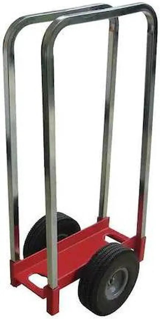 Removable-Rail Panel Dolly, Load Capacity 150 lb, Deck Length 20 in, Deck Width 6 1/2 in, Deck Height 7 3/8 in, Deck Material Steel, Deck Surface Smooth, Frame Material Steel, Frame Finish Powder Coated, Wheel Diameter 10 in, Wheel Type Semipneumatic, Wheel/Tread Material Rubber, Handle Type (2) Removable Raised, Lip Height 2 in, Assembled No, Color Red. This item has been restricted from sale in the following state (s): []