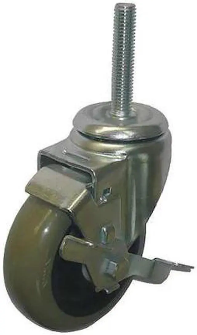 NSF-Listed Sanitary Threaded Stem Caster, Swivel Caster with Brake, 275 lb Load Rating, 0 to 299 lb, 4 in Wheel Dia., 1 1/4 in Wheel Width, Polyurethane Wheel/Tread Material, 5 in Mounting Height, Delrin, 1/2 In. -13 x 2-1/2 in Caster Stem Size, Threaded, Steel Caster Frame Material, Zinc Plated Frame Finish, Yes Non-Marking, 1 Number of Wheels. This item has been restricted from sale in the following state (s): []