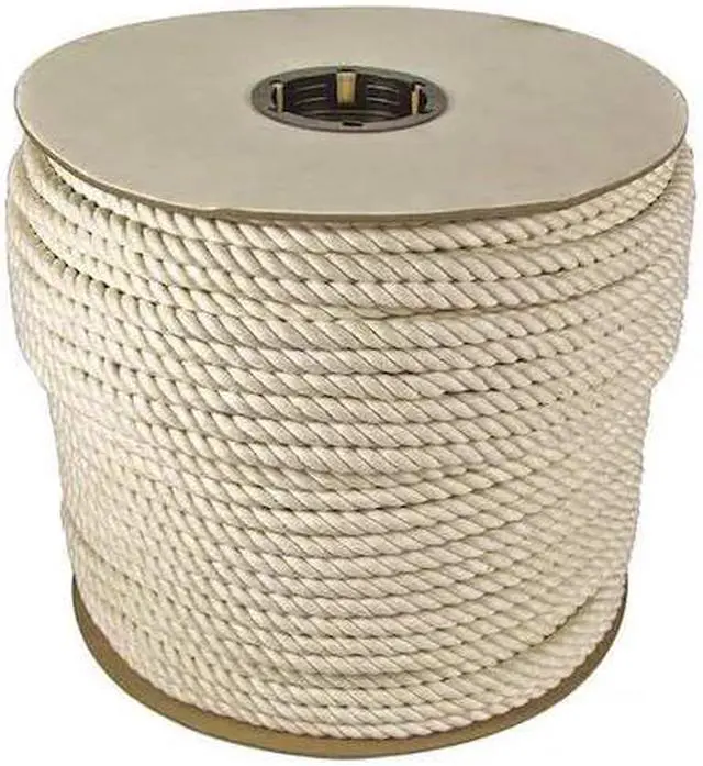 Rope Item General Utility Rope, Rope Sub-Category All Purpose, Rope Diameter 1/2 in, Rope Material Cotton, Rope Strand Count 3, Rope Length 300 ft, Working Load Limit 215 lb, Rope Core Strand Count 0, Rope Construction Twisted, Tensile Strength 2, 150 lb, Rope Core No, White, Package Type Reel. This item has been restricted from sale in the following state (s): []