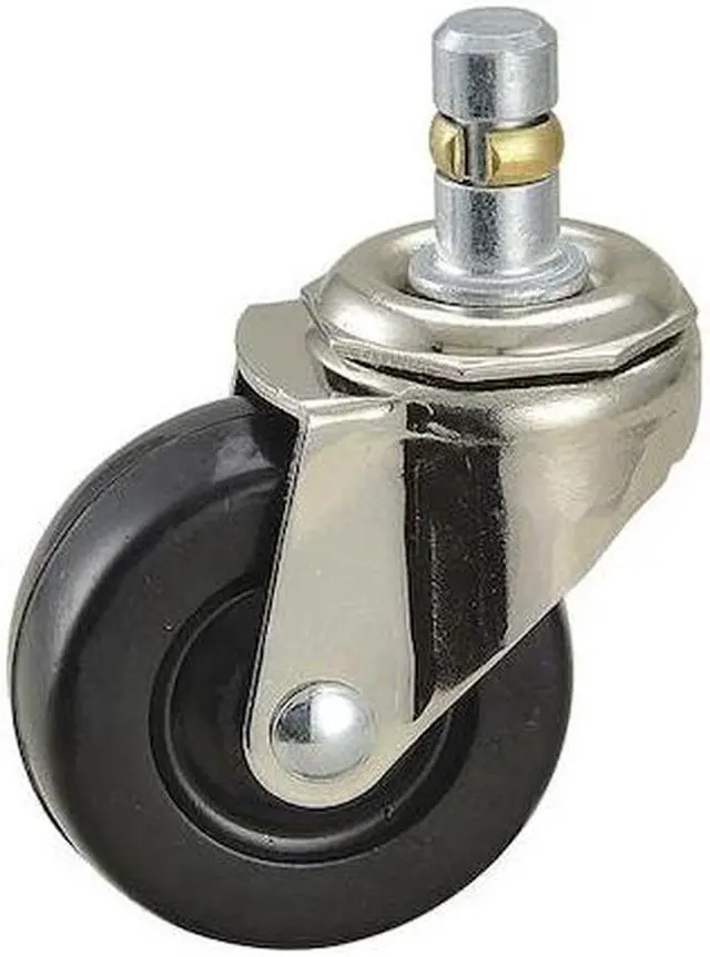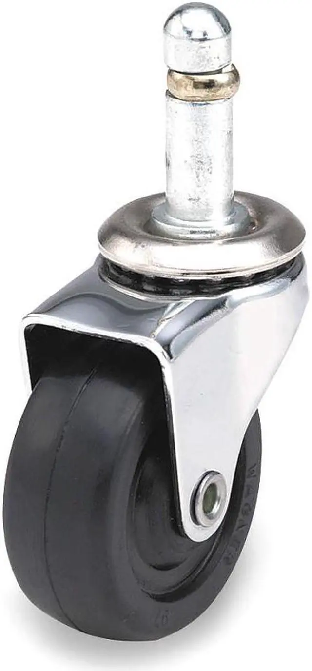 California Proposition 65: This product contains a chemical known to the State of California to cause birth defects or other reproductive harm. Stem Caster, Swivel Caster, 75 lb Load Rating, 0 to 299 lb, 2 in Wheel Dia., 7/8 in Wheel Width, Rubber Wheel/Tread Material, 2 7/16 in Mounting Height, Plain, 7/16 in x 7/8 in Caster Stem Size, Friction Ring, Steel Caster Frame Material, Nickel Plated Frame Finish, No Non-Marking, 1 Number of Wheels. This item has been restricted from sale in the following state (s): []