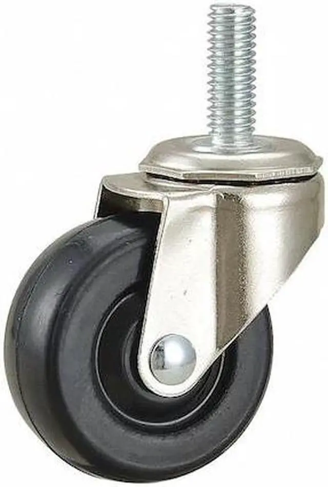 California Proposition 65: This product contains a chemical known to the State of California to cause birth defects or other reproductive harm. Stem Caster, Swivel Caster, 75 lb Load Rating, 0 to 299 lb, 2 in Wheel Dia., 7/8 in Wheel Width, Rubber Wheel/Tread Material, 2 1/2 in Mounting Height, Plain, 3/8 In. -16 x 1 in Caster Stem Size, Threaded, Steel Caster Frame Material, Nickel Plated Frame Finish, No Non-Marking, 1 Number of Wheels. This item has been restricted from sale in the following state (s): []