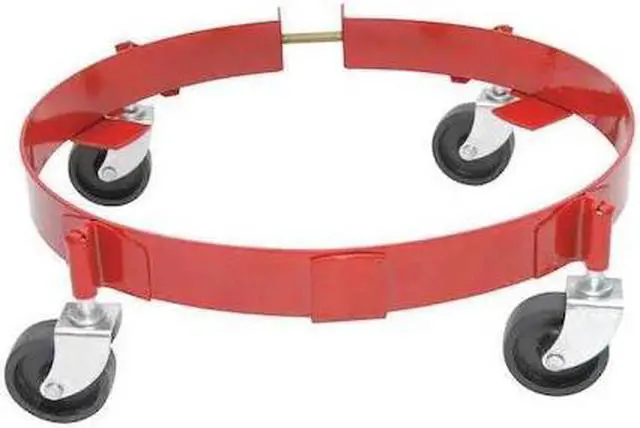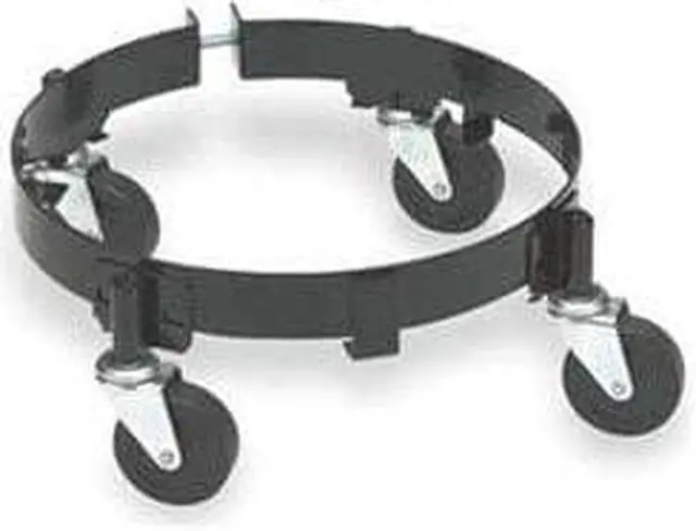 Drum Dolly, Load Capacity 120 lb, For Cntnr Cap 16 gal, Deck Height 3 3/8 in, Deck Shape Round, Deck Type Open, For Container Material Plastic, Steel, For Maximum Container Diameter 26 1/2 in, Adjustment Type Band Clamp, Bolt, Frame Material Steel, Frame Gauge 13 ga, Rim Catch Type Fixed, Securing Mechanism No Securing Mechanism, Frame Finish Powder Coated, Caster Wheel Dia. 2 1/2 in, Caster Wheel/Tread Material Rubber. This item has been restricted from sale in the following state (s): []