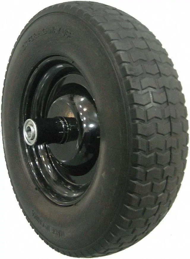 Wheelbarrow Tire, 5/8 In. Axle, Outside Diameter 14.5 in, Tread Pattern SU12, Tire Width 6 in, Tire Material PU Foam, Steel, Wheel Material PU Foam, Steel. This item has been restricted from sale in the following state (s): []