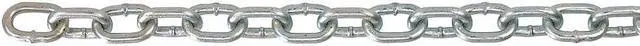 Straight Chain, Chain Type Machine Chain, Material Carbon Steel, Lifting Capability Not for Lifting, Working Load Limit 545 lb, Trade Size 02/0, Link Inside Length 3/4 in, Link Type Straight, Link Inside Width 3/8 in, Overall Length 100 ft, Links per Foot 15, Includes Hook No Hook Included, Hook Type Included Not Applicable, Finish Zinc Plated, Material Thickness 3/16 in, Weight per Foot 0.33 lb, Welding Type Welded, Standards NACM. This item has been restricted from sale in the following state (s): []