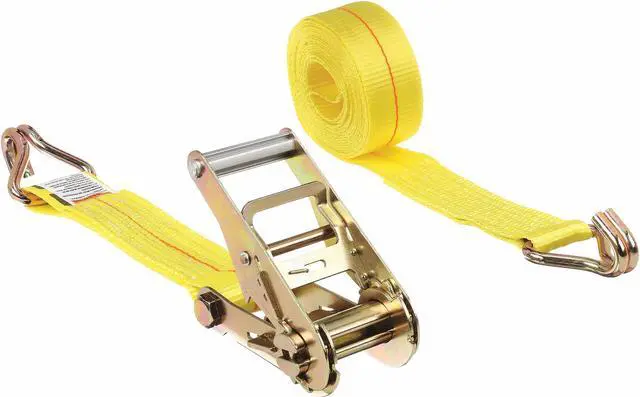 Tie Down Strap, Working Load Limit 1, 600 lb, Color Yellow, End Type Wire-Hook, Tensile Strength 5, 000 lb/in, Tie Down Material Polyester, Overall Width 2 in, Reinforcement Properties General Purpose, Fixed End Length 16 in, Overall Length 15 ft, Standards FMCSA, US DOT, WSTDA, Adjustment Type Ratchet, Manufacturers Warranty Length Not Applicable, End Material Steel, Product Type Tie Down Strap. This item has been restricted from sale in the following state (s): []