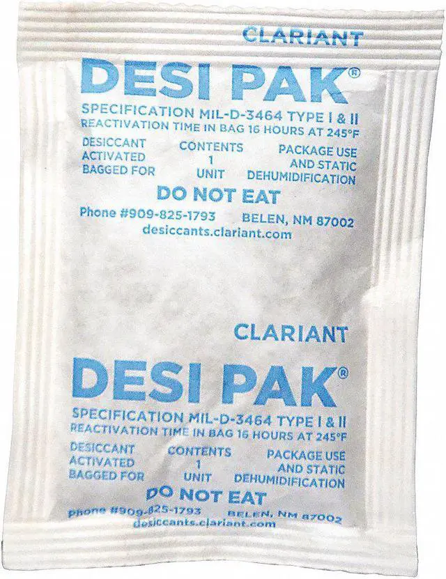 Desiccant, Desiccant Bag Type Tyvek (R) Bags, Area Protected 0.83 cu ft, Width 3 in, Length 4 in, Desiccant Bag Size 1 oz, Container Type Pail, Bags per Package 300, Application Closed Containers, Material Tyvek, Color White, Package Quantity 300. This item has been restricted from sale in the following state (s): []