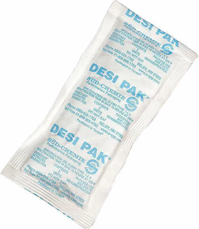 Desiccant, Desiccant Bag Type Tyvek (R) Bags, Area Protected 1.67 cu ft, Width 3 in, Length 6 in, Desiccant Bag Size 2 oz, Container Type Pail, Bags per Package 150, Application Closed Containers, Material Tyvek, Color White, Package Quantity 150. This item has been restricted from sale in the following state (s): []