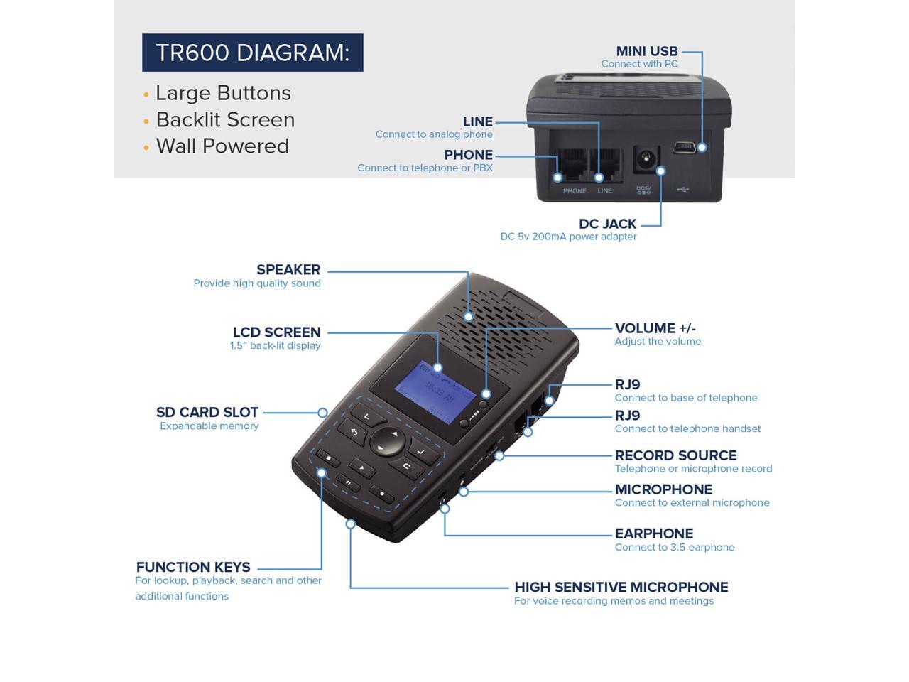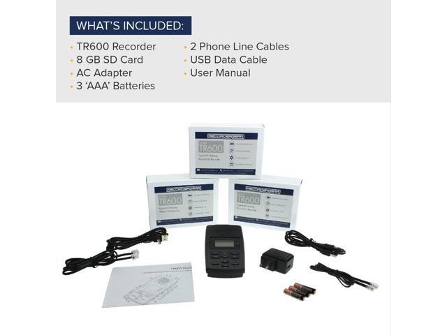 RecorderGear TR600 Landline Phone Call Recorder For Analog/IP/Digital Lines, Automatic Telephone Recording Device