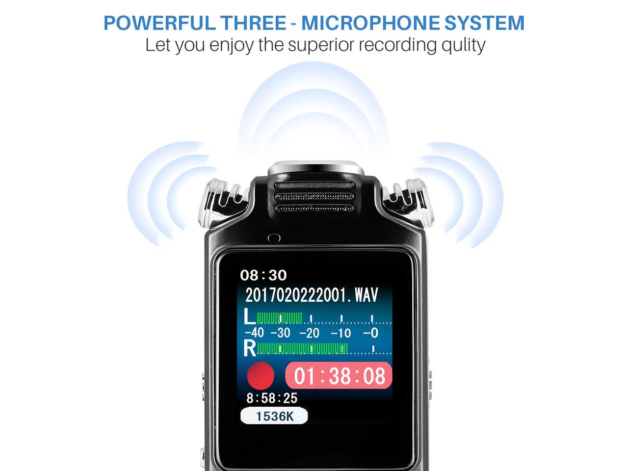 AUTENS digital voice recorder using professional DSP acoustic processor, built-in intelligent noise reduction chip, directly filter the surrounding noise, abilitiy to capture recording content accurately and clearly.