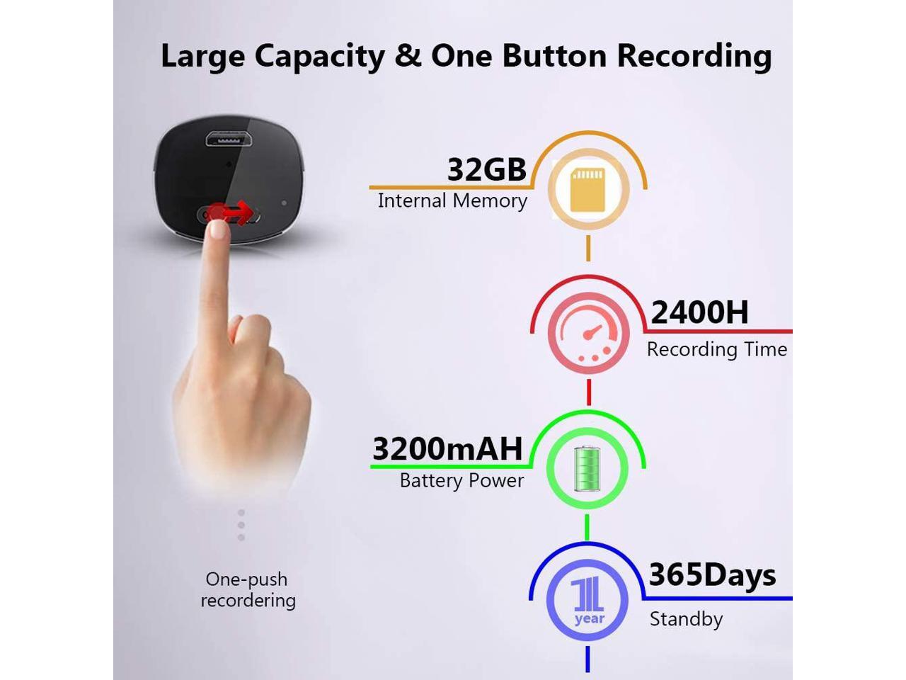 - 1160 Hours Long-time Recording- Large capacity rechargeable 3200mAh battery of this sound recorder allows maximum 365 days stand by time, continuous recording for about 300 hours after each fully powered; 16GB memory can totally store up to 1160 hours recording files at 32kbps. A password locking also makes your voice recorder a safe and secret keeper (set up at computer).