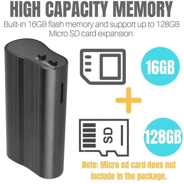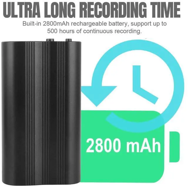 500 Hours Long-Time Recording - Build-in 2800mAh rechargeable battery, which allows maximum 60 days standby time, 5000 hours continuous recording after a full charge. Built-in 16GB memory, can also be expanded up to 128GB memory, large capacity, can store up to 999 recording files.