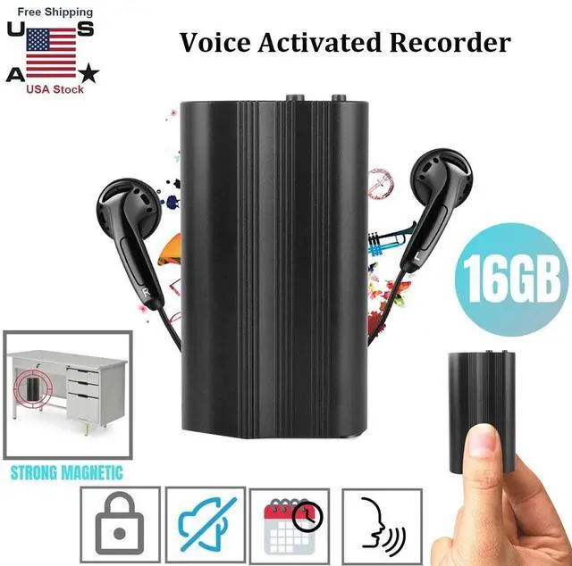 500 Hr Mini Spy Voice Activated Recorder Digital Audio Magnetic 16GB MP3 Player