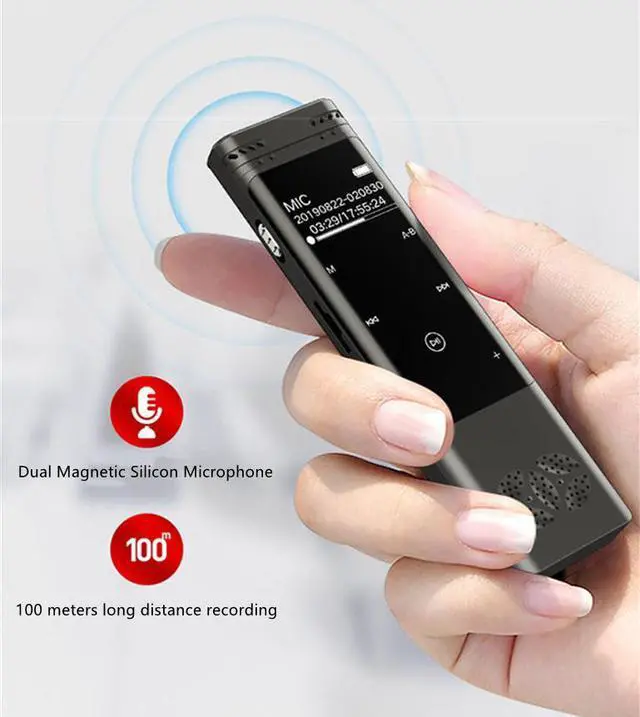 Built-in 10mm large-caliber high-sensitivity dual microphone, 360° HD long-distance recording. Left and right channel stereo picks up the sound, it can record all the voices you hear within 100 meters.