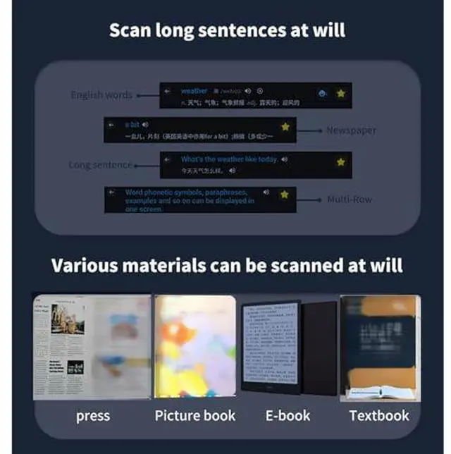 - Excellent ABS Material: This reader scanner pen is made of excellent ABS material, which is sturdy and wear- not easy to be damaged, and has a long service life. Its construction ensures that it can withstand the wear and tear of daily use, making it a tool for language learning and other activities.