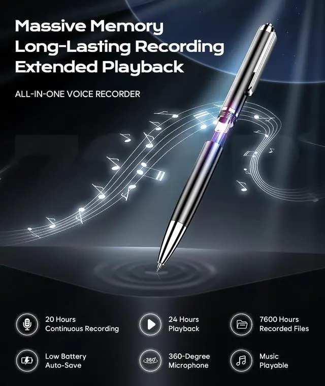 72GB Large Memory & Long Battery Life : The recording device has a built-in 72GB capacity memory and a high-capacity rechargeable battery. Up to 7600 hours of audio recordings can be stored. Continuous recording 35 hours. It can automatically save files when the battery is low, avoiding the loss of recordings due to a dead battery.