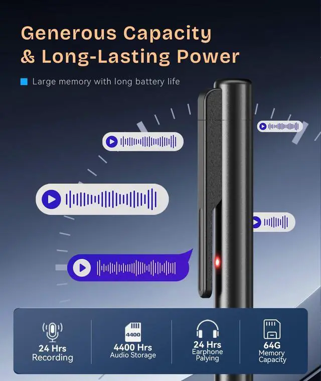 | Specifications | Size: 64G, Brand: Azivox, Color: Black, Format: wav, Battery_weight: 8 grams, Battery_average_life: 24 hours, Battery_cell_composition: lithium_ion, Skip_offer: false, Part_number: V7, Unspsc_code: 52161535, Manufacturer: Azivox, Num_batteries_type: nonstandard_battery, Num_batteries_quantity: 1, Control_method: push_button, Headphones_jack: 3.5 millimeters, Lithium_battery_packaging: batteries_contained_in_equipment, Lithium_battery_energy_content: 0.85 watt_hours, Number_of_items: 1, Batteries_included: true, Batteries_required: true, Compatible_devices_0: Personal Computer, Compatible_devices_1: Smartphone, Compatible_devices_2: Laptop, Hardware_interface: usb3.0_c, Included_components_0: Earphone*1, Included_components_1: USB Cable*1, Included_components_2: User Manual*1, Included_components_3: Black Refill*4, Item_package_weight: 0.082 kilograms, Warranty_description: 1 Year Warranty, Microphone_form_factor: Built-In, Item_package_dimensions: 1.7018 L x 10.5918 W x 19.1008 H centimeters, Memory_storage_capacity: 64 GB, Contains_battery_or_cell: battery, Product_site_launch_date: 2025-09-30T14:00:00Z, Microphone_operation_mode: Noise Cancellation, Number_of_lithium_ion_cells: 1, Includes_rechargable_battery: true, Battery_installation_device_type: not_installed, Supplier_declared_dg_hz_regulation: not_applicable, Has_multiple_battery_powered_components: false, Supplier_declared_has_product_identifier_exemption: true |