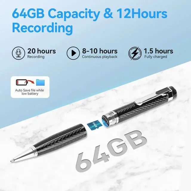 | Specifications | Size: 64GB, Brand: Rerrfuleat, Color: black, Format: csv, Battery_average_life: 12 hours, Skip_offer: false, Part_number: 64GB Voice Recorder, Unspsc_code: 52161535, Manufacturer: Rerrfuleat, Control_method: push_button, Headphones_jack: 3.5 millimeters, Number_of_items: 1, Batteries_included: false, Batteries_required: false, Compatible_devices_0: Laptop, Compatible_devices_1: Earphone, Compatible_devices_2: Smartphone, Compatible_devices_3: MP3 Player, Compatible_devices_4: Tablet, Hardware_interface: usb, Included_components_0: 64GB Voice Recorder, Included_components_1: Replacement inks, Screwdriver, Included_components_2: 64 GB TF Card, Card Reader, Included_components_3: 3.5mm Earphone, Included_components_4: Instruction Manual, Item_package_weight: 0.109 kilograms, Warranty_description: 180 days refund, Microphone_form_factor: Boundary, Item_package_dimensions: 3.4036 L x 8.6106 W x 17.2974 H centimeters, Memory_storage_capacity: 64 GB, Product_site_launch_date: 2025-12-01T12:28:28.698Z, Microphone_operation_mode: Stereo, Supplier_declared_dg_hz_regulation: not_applicable |