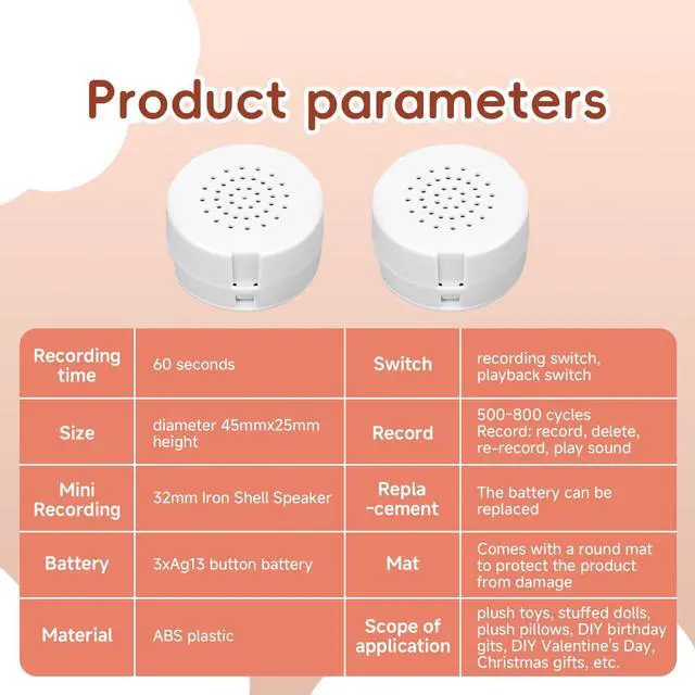 Wide range of uses: The small recording device is suitable for DIY projects such as bears, dolls, pillows, plush toys and other Christmas gifts, making them more unique and interesting, suitable for ages 16 and above