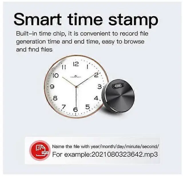 **High-Quality Audio & Features**: ADPCM recording at 192Kbit, voice-activated recording (50DB sensitivity), auto-split, loop overwrite, and time-stamped file naming for easy retrieval.
