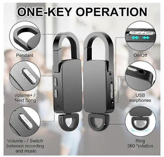 **Portable & Durable Titanium Design**: Featuring a sleek, keychain-ready titanium alloy casing, this recorder is built to last and easily attaches to keys, bags, or pockets for on-the-go convenience.