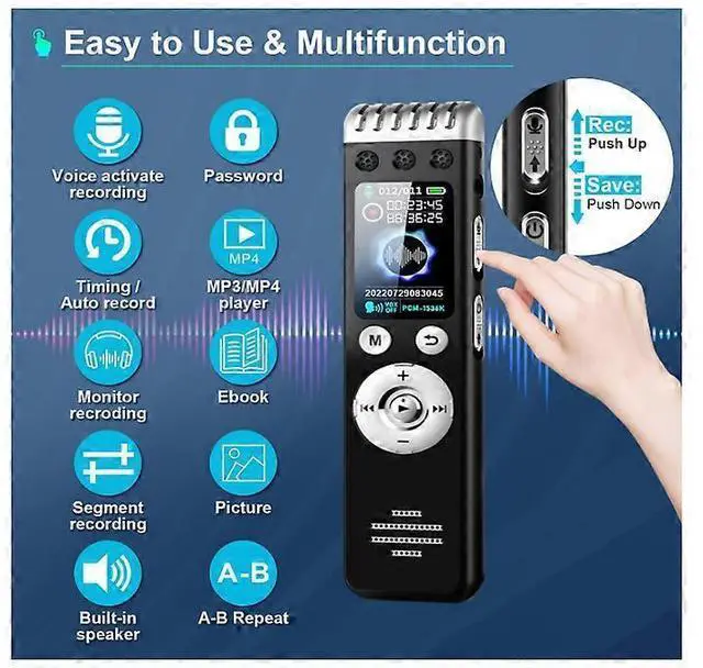- Additional functions: A-B repeat, segment recording, password protection, and e-book compatibility