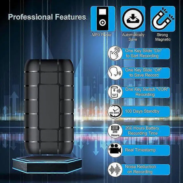 **Extended Battery Life**: 1500mAh rechargeable battery supports up to 200 hours of continuous recording and half a year standby on a single 3-hour charge.