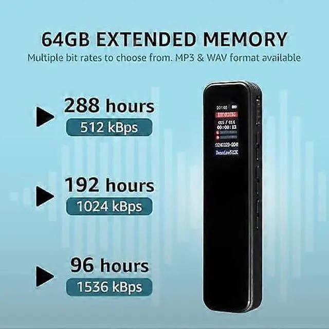 **Massive 64GB Storage**: Store up to 4650 hours of content, perfect for long lectures, meetings, and interviews.