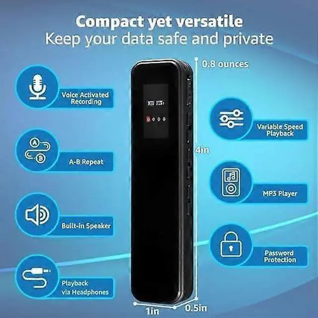 **Easy Playback & Privacy**: Review recordings directly on the device or privately with headphones, plus password protection for secure file access.