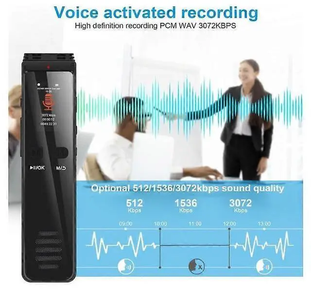 High-quality 3072Kbps recording with noise reduction for clear playback