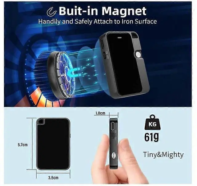 Magnetic Design: Strong magnet attaches securely to metal surfaces for hands-free, portable recording anywhere.