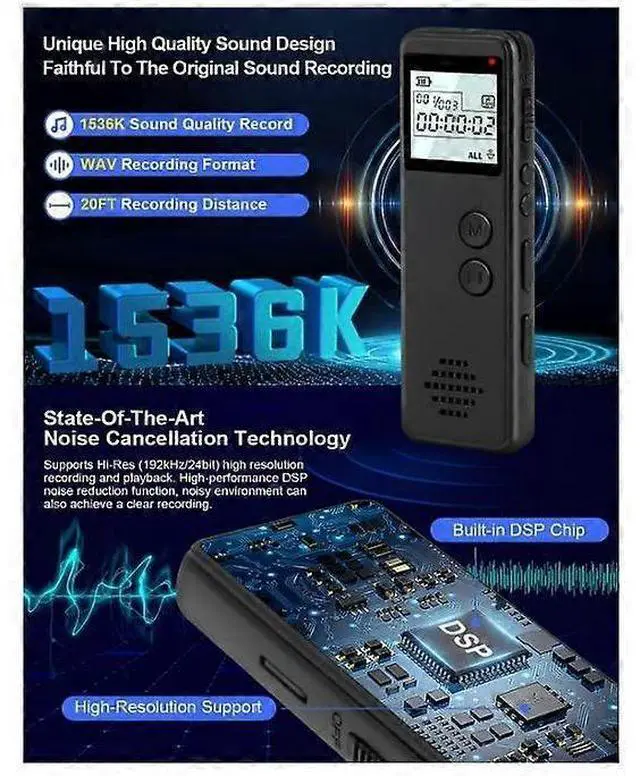 1536kbps PCM recording with DSP noise reduction for crystal-clear sound