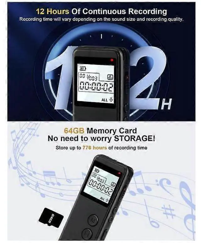 64GB built-in memory storing up to 776 hours of audio files