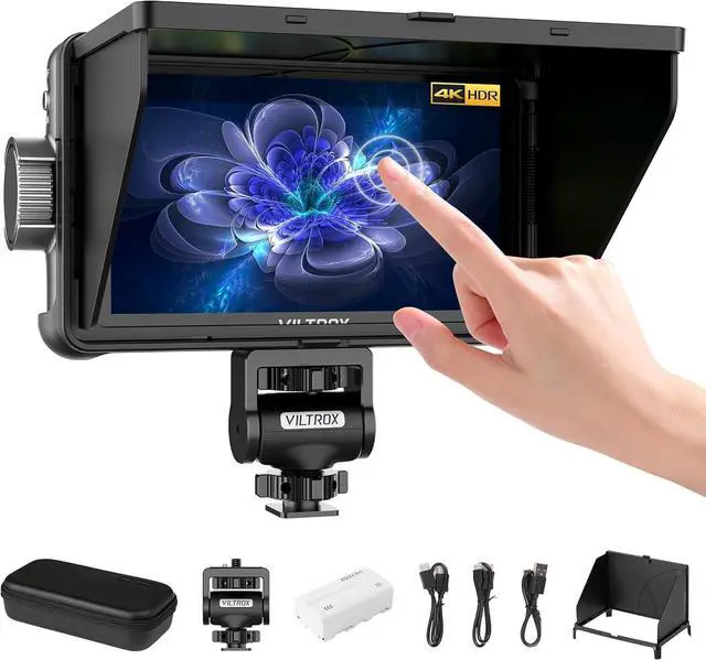 QUICK-RELEASED SUNSHADE HOOD: With a detachable hood design, one-second quick release, can effectively block interference from the light source, and obtain a good monitoring effect when filming outdoors. The Touchscreen video monitor can be mounted on a camera, camcorder, and tripod easily with two 1/4" screw holes and a mini hot shoe adapter.