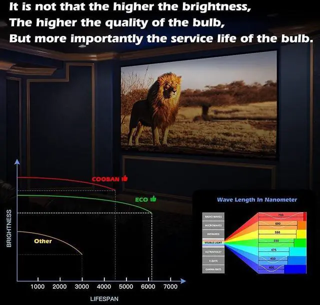 4. Lamp Model: ELPLP97 /V13H010L97 with housing, perfect compatibility to ensure the output of high brightness and clear pictures. 3500 lumens brightness, 5000 hours life, ECO mode longer life.