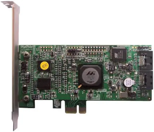 PCI -Express x1 (x4, x8 and x16 slot compatible) 128 MB of DDR II memory 2 SATA II channels at 3Gb/s per port Multi -adapter support up to 4 adapters BIOS booting support BIOS PnP and BBS (BIOS boot specification) support RoHS compliant Support RAID 0, 1, and JBOD Multiple RAID support Multiple Logical Drive Support Online array roaming Online capacity expansion (OCE) and Online RAID level migration (ORLM) Quick and Background initialization for instant RAID configuration Automatic drive insertion / removal detection and rebuild 64bit LBA support greater than 2TB per volume S. M. A.