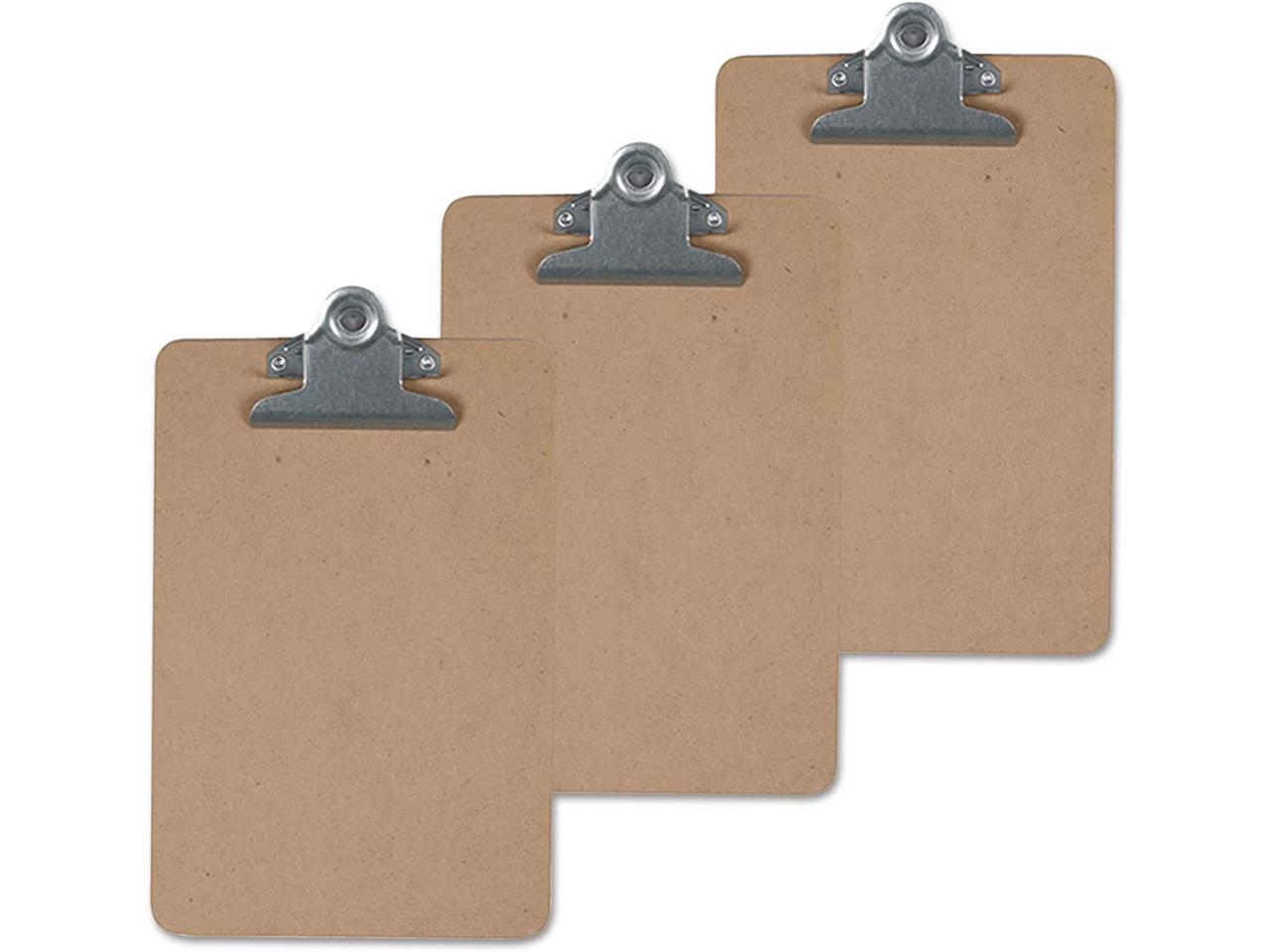 Universal 40305VP Hardboard Clipboard, 1 Inch Capacity, Holds 8 1/2 X 14, Brown, 3/Pk