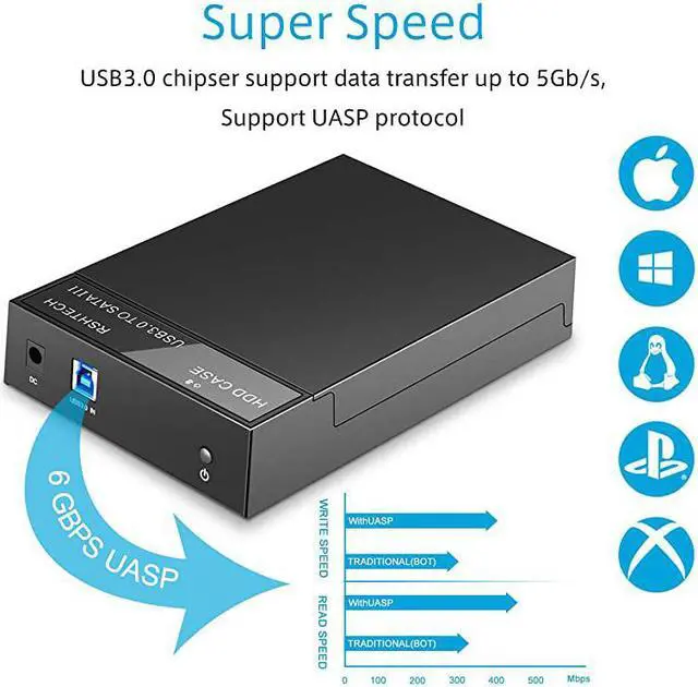 Hot-swappable: Plug and play, no drivers needed; The SATA interface of the drive enclosure supports UASP accelerated transmission protocol (UASP requires UASP capable host system). Made of safe and high quality ABS plastic makes this enclosure solid and sturdy.