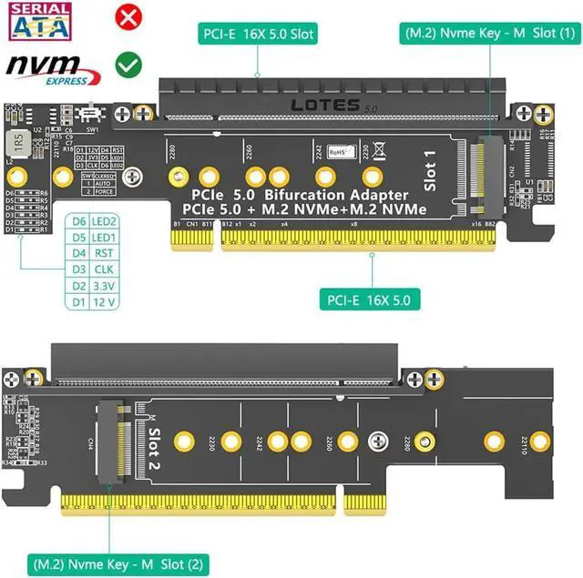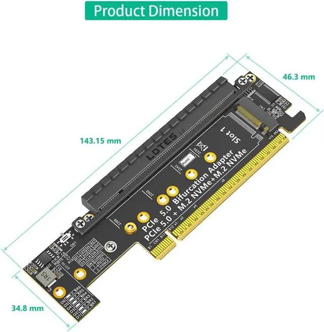 1. Dual NVMe-compatible PCIe Adapter can add 2x M.2 NVMe-compatible SSD Slot via PCIe 5.0 x16, but also expaind extra PCIe x16 slot (x8 Signal), which can use for expanding any other PCIe Device.