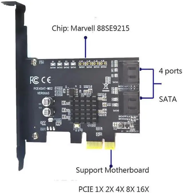 • Aomoproing Marvell 88SE9215 chip SATA III 4 ports PCI-Express controller card support PCI Express x1 x2 x4 x8 x16 motherboard for HDD SSD