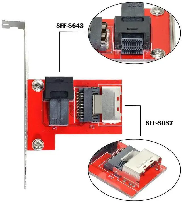• PCI-Express 4.0 Mini SAS SFF-8087 to SAS HD SFF-8643 PCBA Female Adapter With Bracket